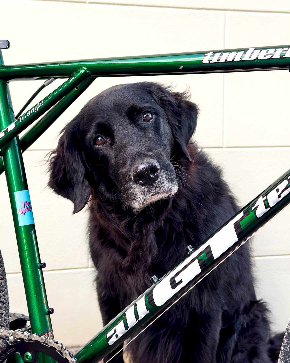 Bien sûr ! Tous ceux qui me connaissent savent que Norman est toujours avec moi. Nous n’avons pas d’atelier, tout se fait littéralement à la maison ou dans le jardin. Norman garde un œil sur ce qui se passe, mais devient un peu méfiant quand à la fin du montage d’un vélo : il sait qu’ils risquent parfois de tomber.